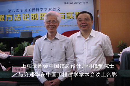 上海世博会中国馆总设计师何镜堂院士与许建华在中国工程哲学学术会议上合影